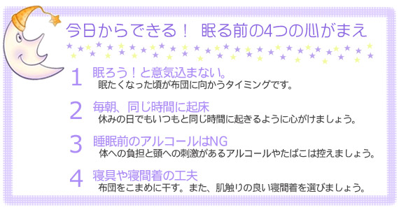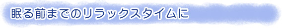 季節の変わり目や、体調、気分などによって 影響を受けやすい「睡眠」。 睡眠不足や、睡眠の質の悪さはストレスの原因にもなります。 健康づくりは質の良い睡眠から。 ココロと体をしっかりと休める「眠り」について紹介していきます。 |