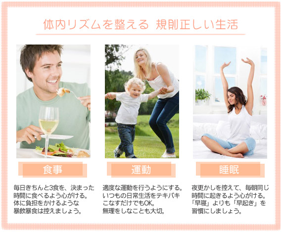 | ココロと体のリラックスタイムを大切に。 体の休息の前には「頭」の休息もお忘れなく♪ 仕事帰りには、好きな音楽を聴いたり、小説を読んで集中したり… ストレスの発散方法は人それぞれです。 ・暴飲暴食、眠る前のアルコールは避ける。 ・ぬるめのお湯にゆっくりつかる。 などを心がけつつ、それでもストレスやイライラがたまりやすい時もありますよね。 そんな時にはサプリメントでの栄養補給でリラックスサポートしてみるのもいいかもしれません。 |